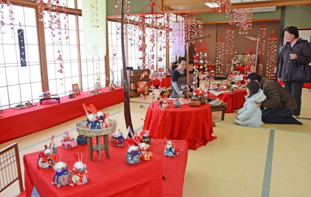 つるしびな、うさぎびななどで楽しませる「はんだのひなまつり」=11日、市内半田コミセン (2017/03/11)