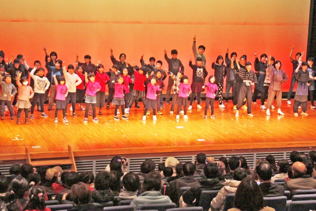 小学生が楽しいステージを繰り広げた「西山ハッピープロジェクト」=19日、西山ふるさと館 (2017/02/23)