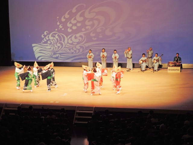 ステージ部門で「佐渡おけさ」を披露した若浪民謡研究会 (2017/02/27)