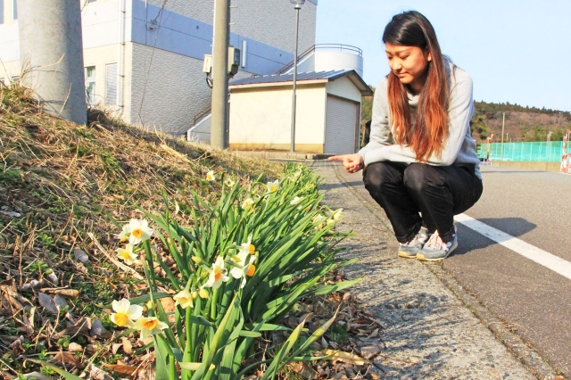 日ごとに花の数が増えてきた大崎スイセン=市内西山町、大田コミセン脇 (2017/03/02)