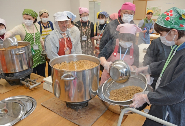 “こだわりのみそ”づくりに挑戦する参加者=柏崎・夢の森公園 (2017/02/09)