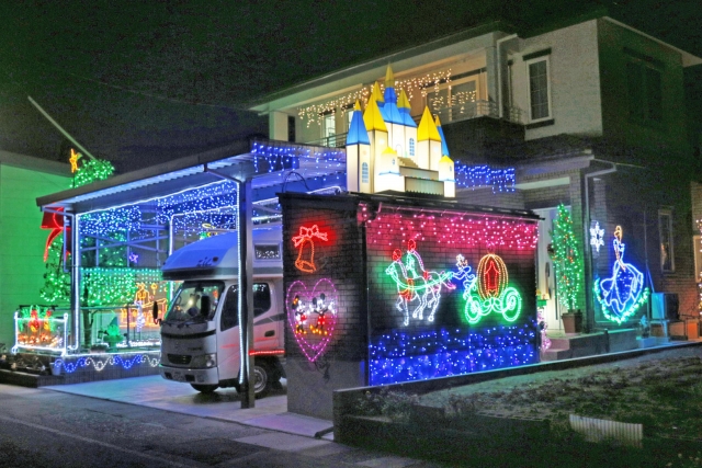 冬の夜空を飾るクリスマスイルミネーション=市内半田2 (2016/12/20)
