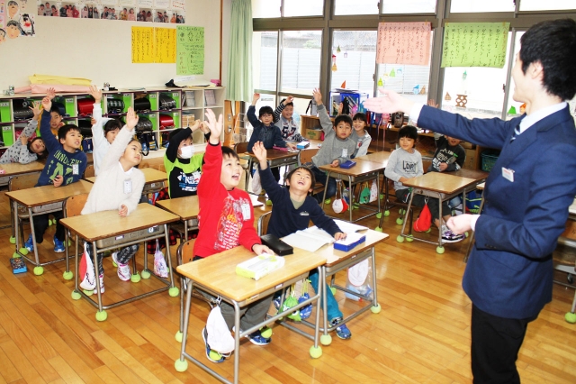 冬休みを前に元気いっぱいの児童=22日午前、枇杷島小 (2016/12/22)