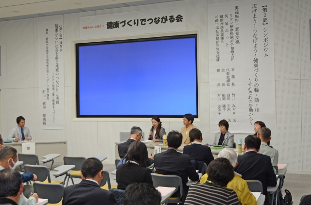 「健康づくりでつながる会」の第1回目。シンポジウムでそれぞれの立場から語った=ソフィアセンター (2016/12/26)