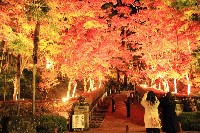 多くの人が訪れ、思い思いに紅葉を楽しんでいる松雲山荘のライトアップ (2016/11/17)