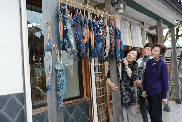 ずらりと並んだサケのキルト作品=市内四谷1 (2016/11/25)