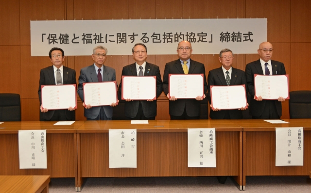 市と、柏崎商議所など経済団体との「保健と福祉の包括的協定」の締結式=24日午後、柏崎商議所 (2016/10/26)