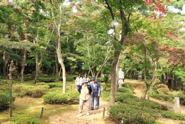 秋の冷え込みとともに、美しい紅葉が期待される松雲山荘。照明機器も設置済みだ (2016/10/28)