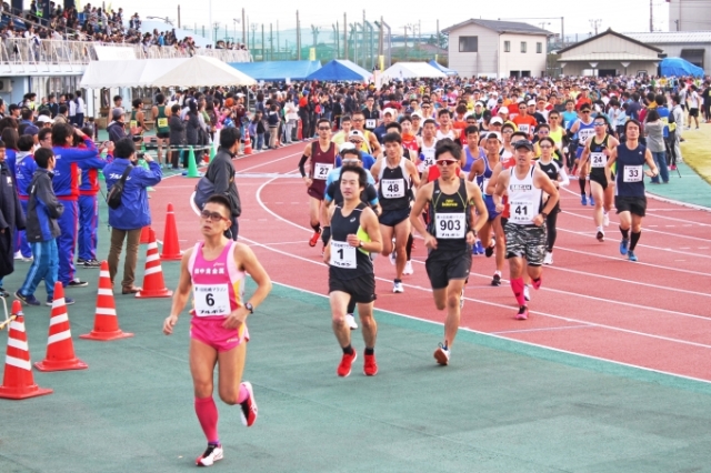 全国から集結したランナー2000人が海岸沿いなどを疾走した柏崎マラソン=30日、市陸上競技場 (2016/10/31)