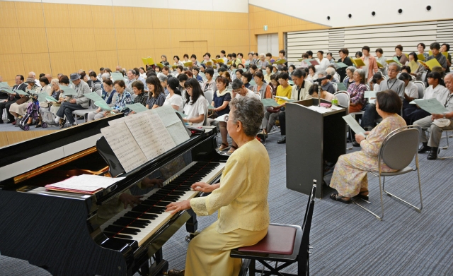 歌声に心を合わせた野ばら会の「歌のつどい」=27日、市民プラザ (2016/08/30)