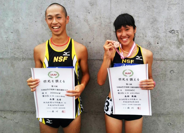 女子2000メートル障害3位の長部選手(右)と男子3000メートル競歩5位の木沢選手 (2016/08/31)