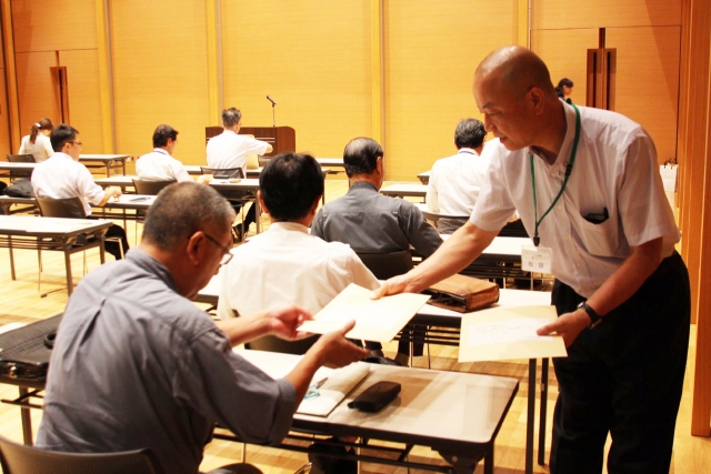 高校卒業予定者の応募書類を求人事業所に配布した引き渡し式=5日、アルフォーレ (2016/09/06)