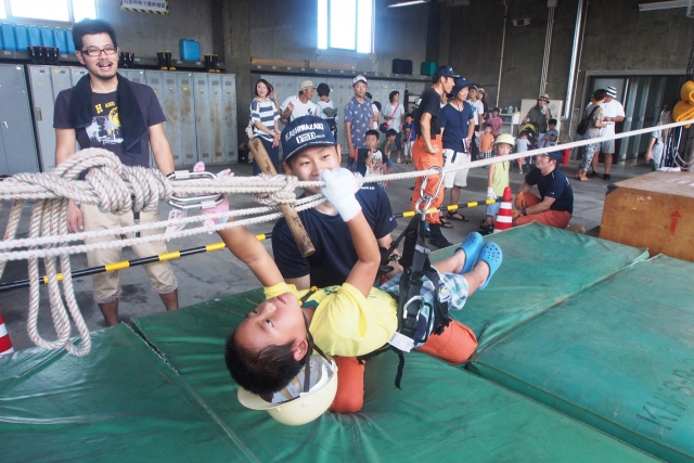 多くの家族連れらでにぎわった消防・救急フェア=4日、消防庁舎 (2016/09/07)