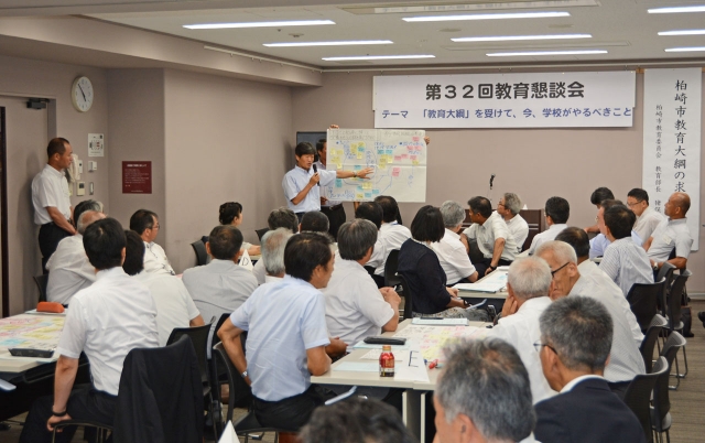 教育大綱のより理解を求めて開かれた教育懇談会。ファシリテーションの発表も行われた=アルフォーレ会議室