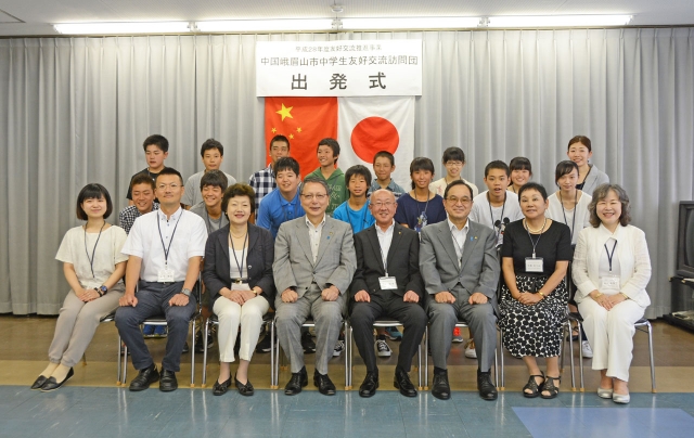 柏崎市が合併後、初めてとなる中国峨眉山市への訪問団の出発式=3日午前、市役所大会議室