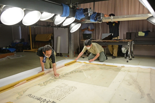 市WEBミュージアムの文化財の充実を目指し、撮影作業が行われた石地漁場の海図=市立博物館 (2016/07/12)