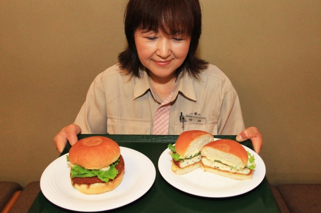 じょんのび村名物のがんもどきを使ったハンバーガー (2016/06/25)