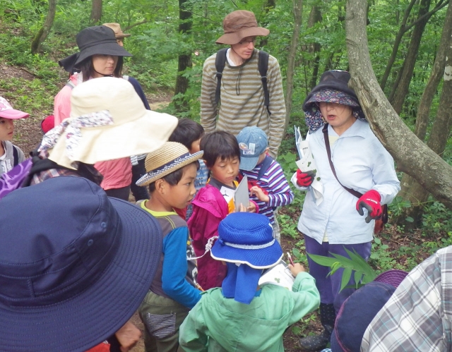 50人が参加した教育センターの植物観察会。参加者が自然の中で、植物について学んだ=市内軽井川 (2016/06/30)