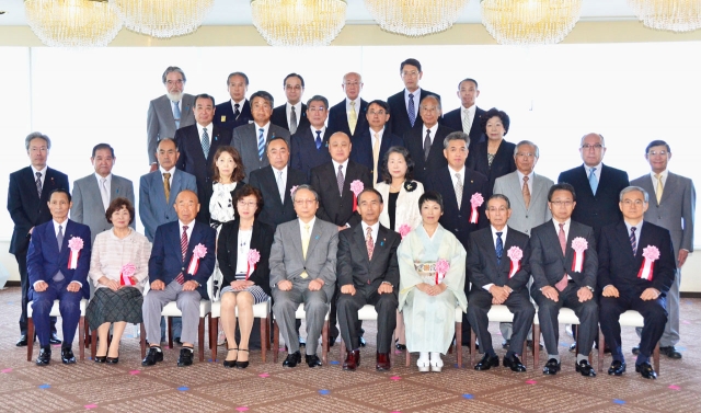 本年度の市功労者表彰を受けた人たちと関係者=1日、市内番神2の岬ひとひら (2016/07/01)