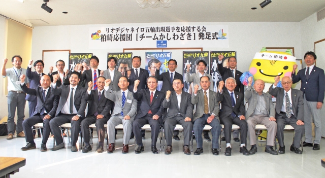リオ五輪に出場する選手らを盛り上げようと設立した「柏崎応援団」の発足式=18日、産文会館