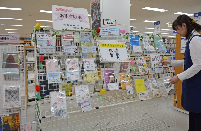 所蔵総数31万点を超えるソフィアセンター。図書館員のお勧めの本コーナーなど利用者に親しまれるように工夫している