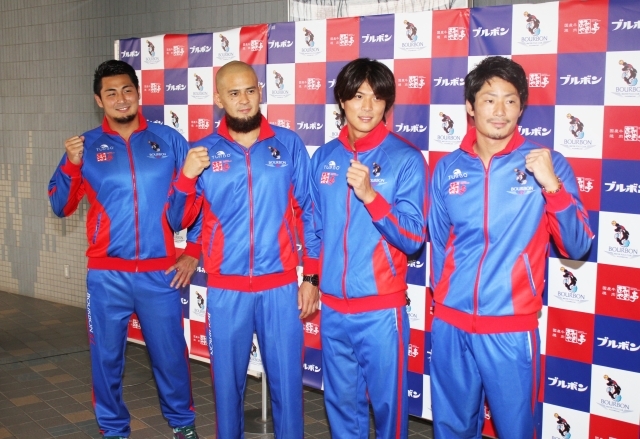 リオ五輪への意気込みを語ったブルボンKZの志水、棚村、保田、筈井の4選手(左から)=26日、柏崎アクアパーク