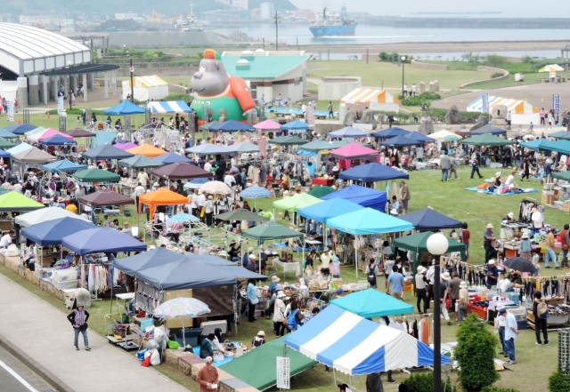 みなとまち海浜公園で開幕した「2016かしわざき風の陣」=28日午前