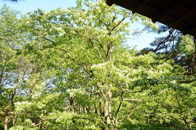 雪のように真っ白い花をつけた「なんじゃもんじゃ」の木。今週末ごろまで見頃だ=12日午後、市内新道の飯塚邸 (2016/05/13)
