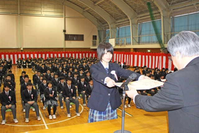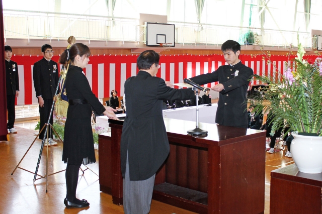 卒業証書を受け取る各クラス代表=1日午前、産大附属高体育館 (2016/03/01)
