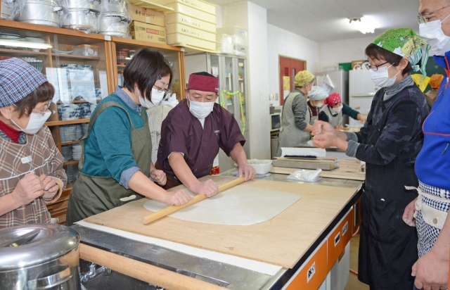 博物館友の会の「蕎麦作り教室」=14日、大洲コミセン調理室 (2016/02/18)