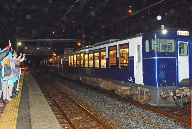 年内最終便を“おもてなし”した青海川駅=29日 (2015/11/30)