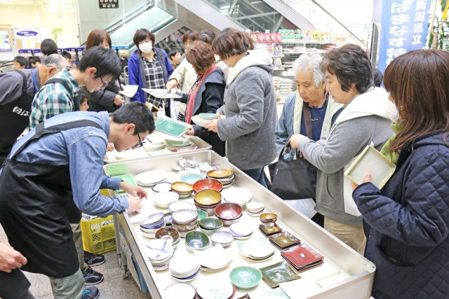 はまなす特別支援高等部生徒が開いた作業製品販売会=2日、市内東本町1のフォンジェ地下催事場 (2015/12/03)