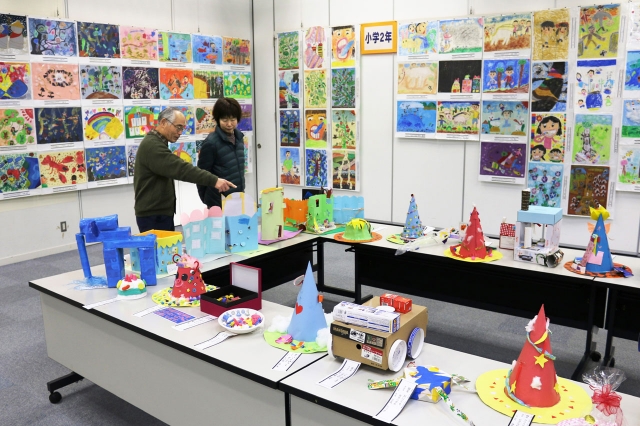 柏崎刈羽の小・中学生の力作がずらりと並んだ美術展=3日、ソフィアセンター (2015/12/04)