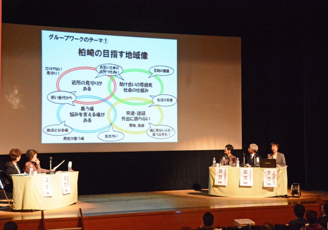 地域での支え合いを考えるフォーラムのパネルディスカッション=3日、産文会館文化ホール (2015/11/04)