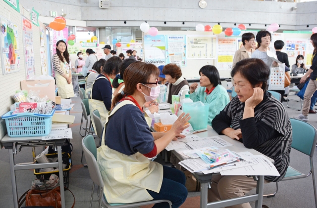 大勢の関心を集めた「健康まつり」=元気館 (2015/10/22)