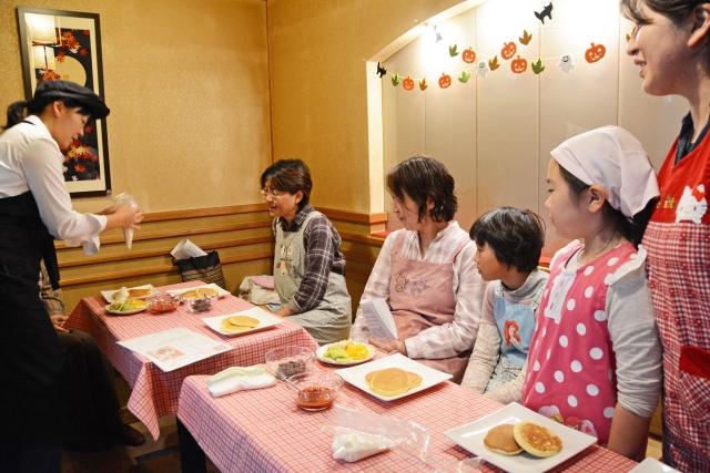 プロの専門知識やこつを分かりやすく教える「まちゼミ」。ちょっとおしゃれなパンケーキ作りを楽しんだ=市内東本町1の店舗 (2015/10/24)