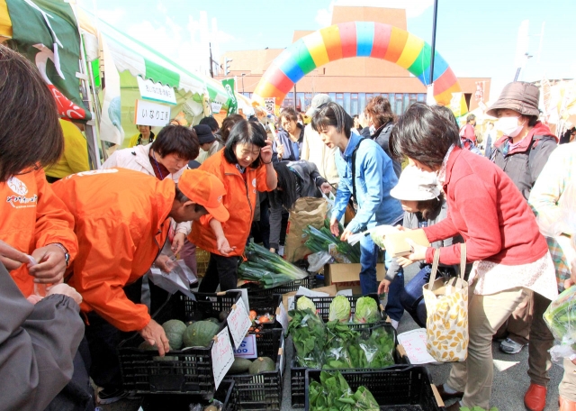 地元産の野菜などを求める人で活気にあふれた「ぱくもぐフェア」 (2015/10/26)