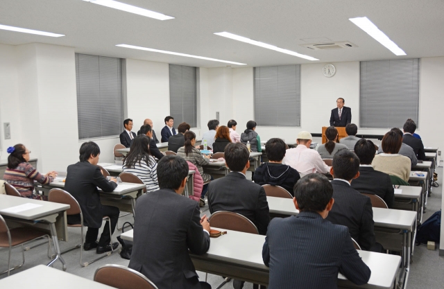「柏崎・社長のたまご塾」2期生の開塾セレモニー。スタートアップ編の開始に向け、期待を込めた=市内東本町1、柏崎信金会議室 (2015/10/15)