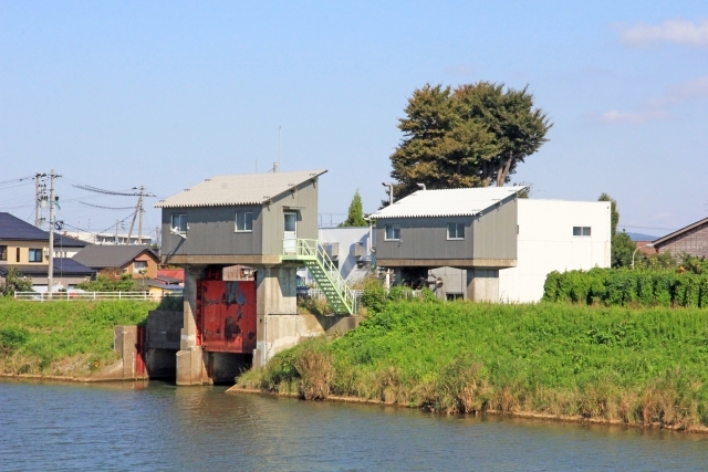 2008年5月に総合内水対策緊急事業で排水ポンプが増強された市内宮場町の横山川排水機場 (2015/10/16)