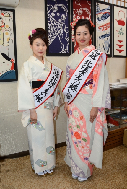 全日本きもの装いコンテスト北越・北陸大会で快挙に輝いた中村さん(右)と前川さん (2015/10/20)