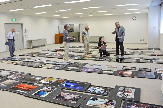 市展の開幕を前に、各部門で慎重に行われた審査=28日、ソフィアセンター (2015/09/29)