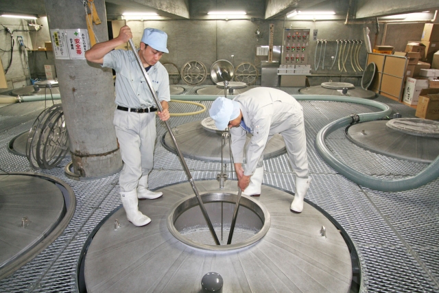 越路早生100%の新酒の仕込み作業に精を出す原酒造 (2015/10/01)