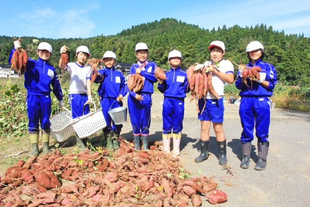 大きなサツマイモに大喜びの北条小4年生 (2015/10/02)