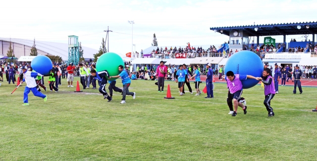 市民4200人が熱戦を繰り広げた市民大運動会=4日、市陸上競技場 (2015/10/05)