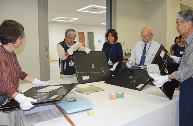市展の開幕を前に始まった応募作品の受け付け=26日午前、ソフィアセンター (2015/09/26)
