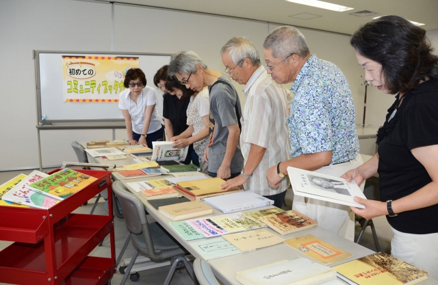 比角コミセン学習部が開いた「コミュニティブックカフェ」=27日、ソフィアセンター  (2015/08/28)