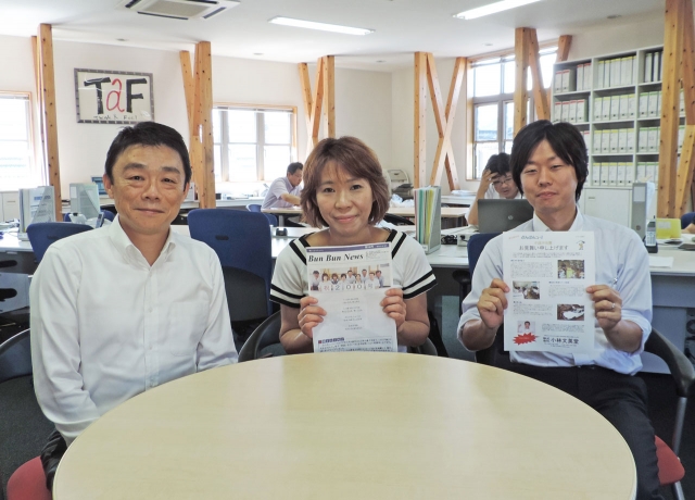 情報紙「Bun Bun News」第200号を発行した小林文英堂の編集スタッフ。左端が小林英介社長 (2015/08/31)