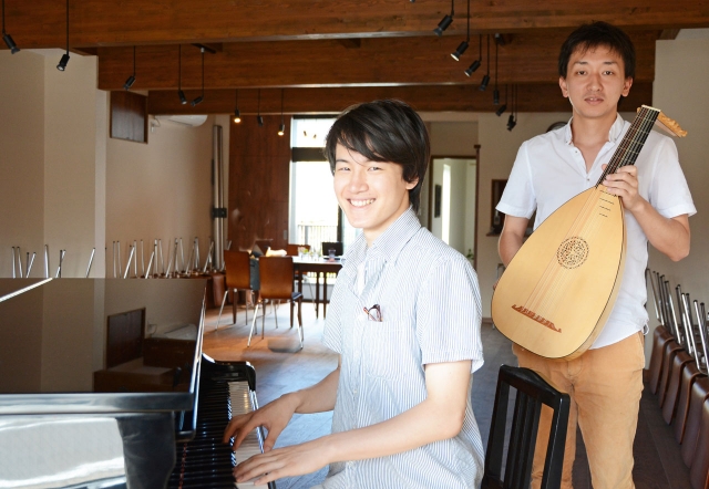 ドイツから一時帰国中の佐々木さん(右)と、イタリアからの馬場さん=市内東本町2、ちいさなほーる「WASUKE」 (2015/09/01)