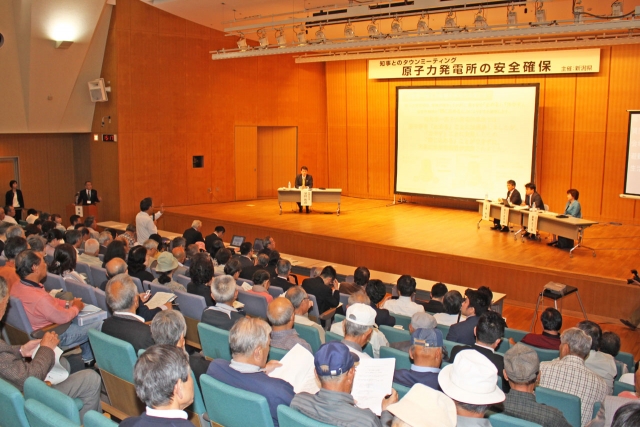 原発の安全確保をめぐり意見を交わしたタウンミーティング=12日、刈羽村ラピカ