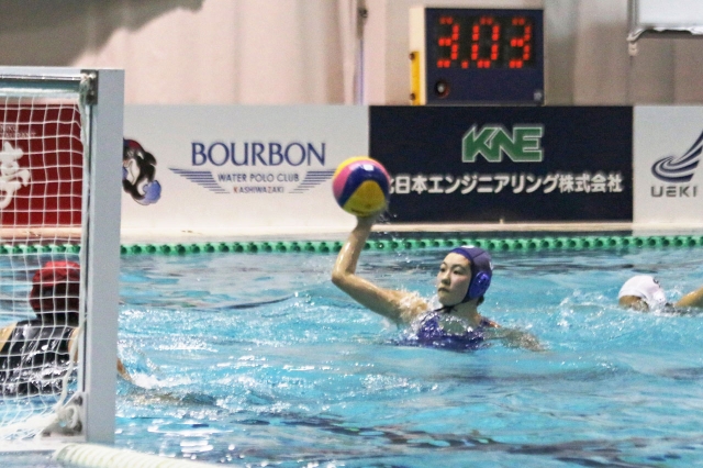 全日本ジュニア水球競技選手権大会女子1回戦のブルボンKZ−山梨県選抜戦=20日午前、柏崎アクアパーク (2015/03/20)